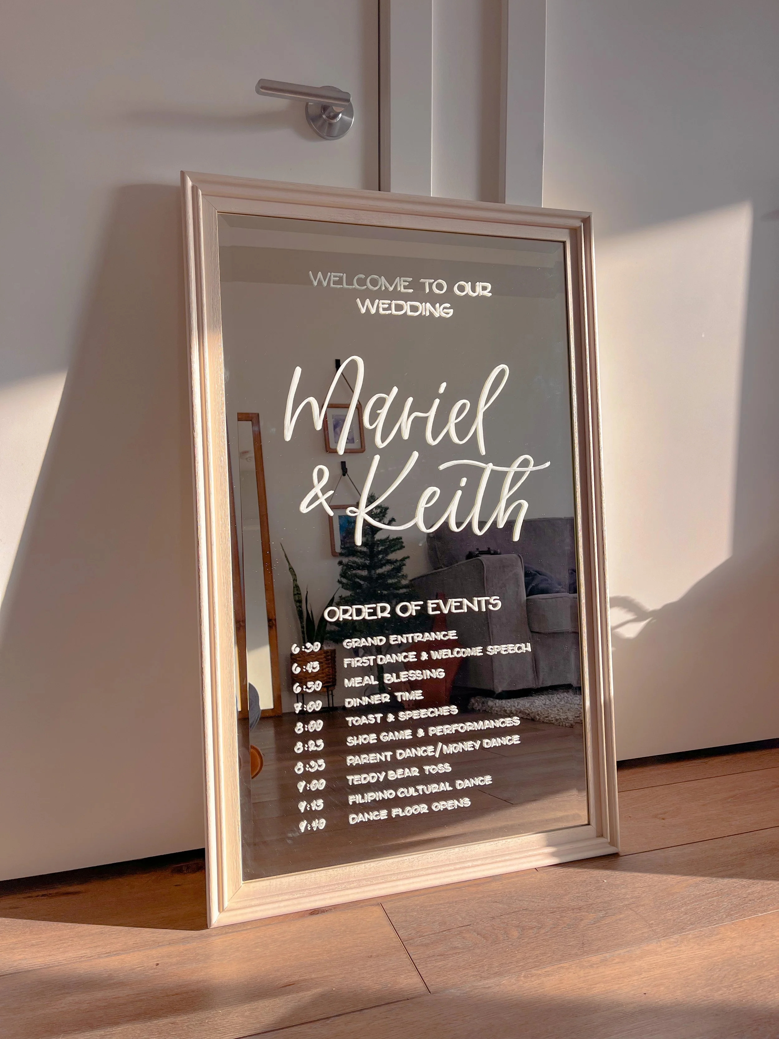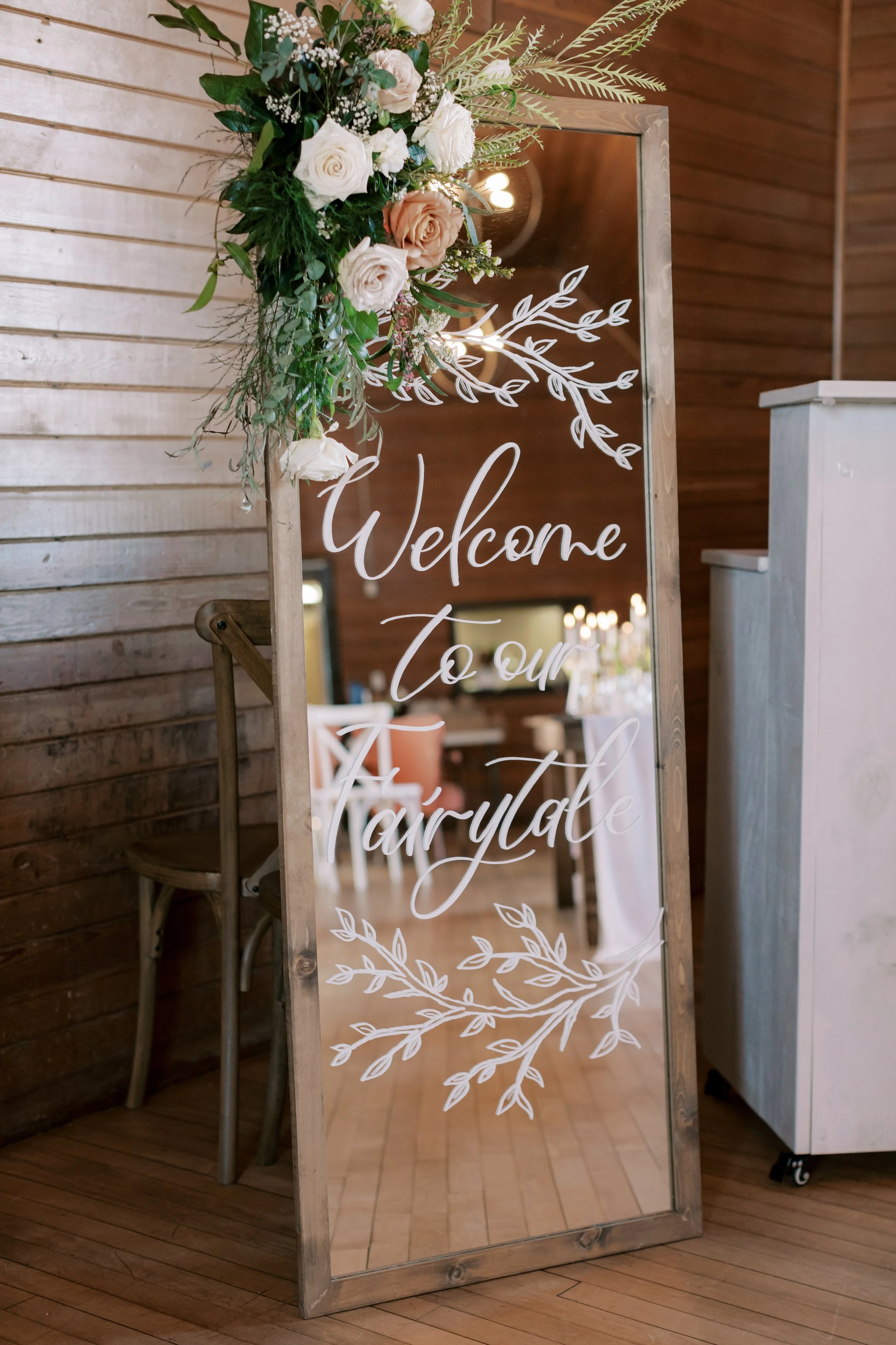One of the most versatile and multifunctional options for your wedding signage. Have your guests photo-ready as they enter your wedding and let them take a selfie. Provide your own mirror and I’ll work my magic—then you get to take it home after the celebration.